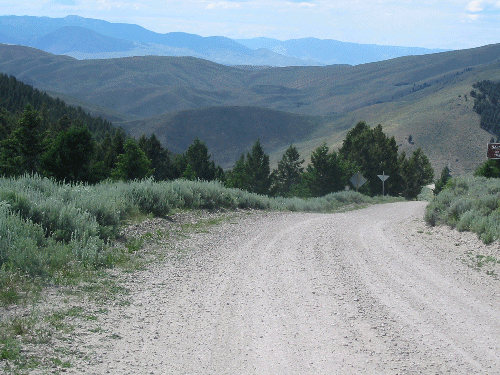 | Sun 7-13 | Off to Lemhi Pass, but out of gas, Flat tire, 40 miles to gas station, but Christine brung us home. Then again to the pass, sign says should have spare tire, from Lemhi pass Lewis expected to see a river flowing to the Pacific, but this was his view, less the road. Met Gov. Agent, BLM, who explained that there really is an Idaho, camped Idaho Falls |