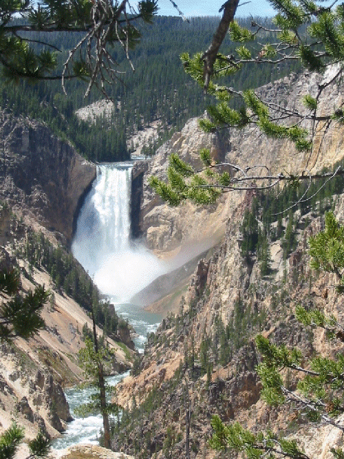 | Sun-7-06 | Started the day with 500ft straight down climb to the lower falls, comparable only to the Crater Lake hike. Did lower loop, lots to see, found Old Faithful, Mud pots , and "growling buffalo" of course. Not allowed to approach the buffalo, but the buffalo can approach you, this one growled at Mary Lou as it chased us down the hill. Now that will get the old heart going! | ![]() ![]() ![]() |
