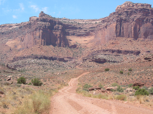 | Sat 7-19 | Visited Dead Horse Point, did Schaefer Jeep trail (two hours) down into canyon, ML endured the switchbacks and shear drop-offs, carrier broke, bikes fell off, again! No ACE Hardware so crammed bikes in the back. Lunch on the canyon floor only 105 or more. |