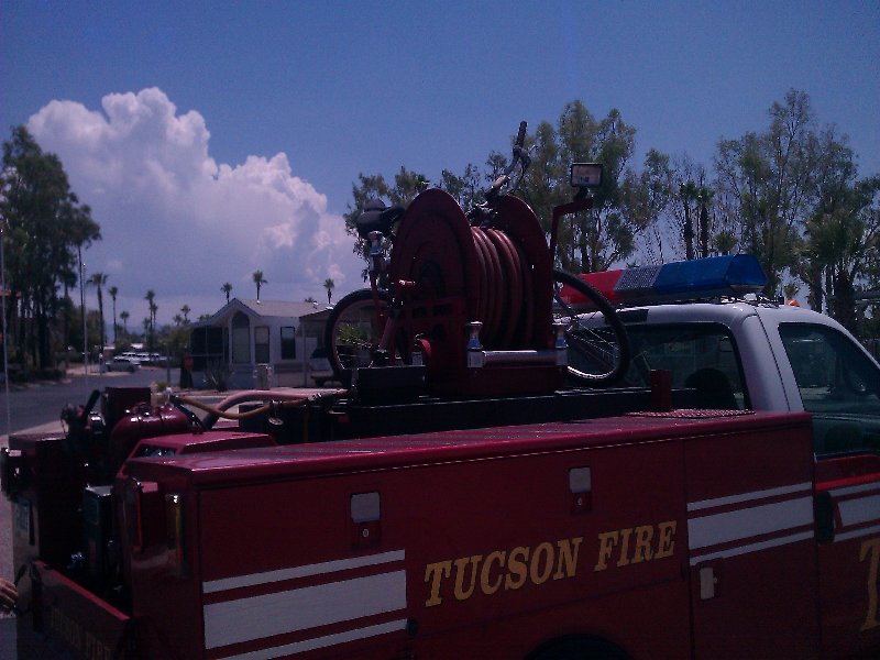 | 29-Jun | We went to Sierra Vista for dinner with the Mayhew's, and we delivered a little rain, which soaked the seats which had to be covered for a drive back to Tucson dodging small storms but didn't get wetter. This brought a little fresh air and a cooling effect. |