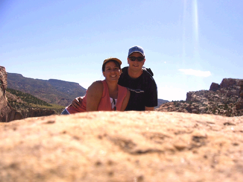 Bridge trail, a hidden arch and a great view. ML and JW sit in the creek. Then
