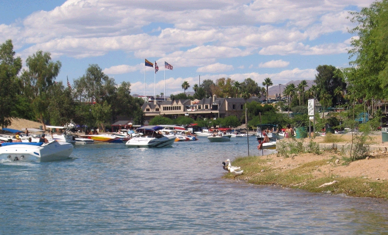Havasu City, and the party!. Stopped at BLM site for lunch. Embarked on boat with Jeep