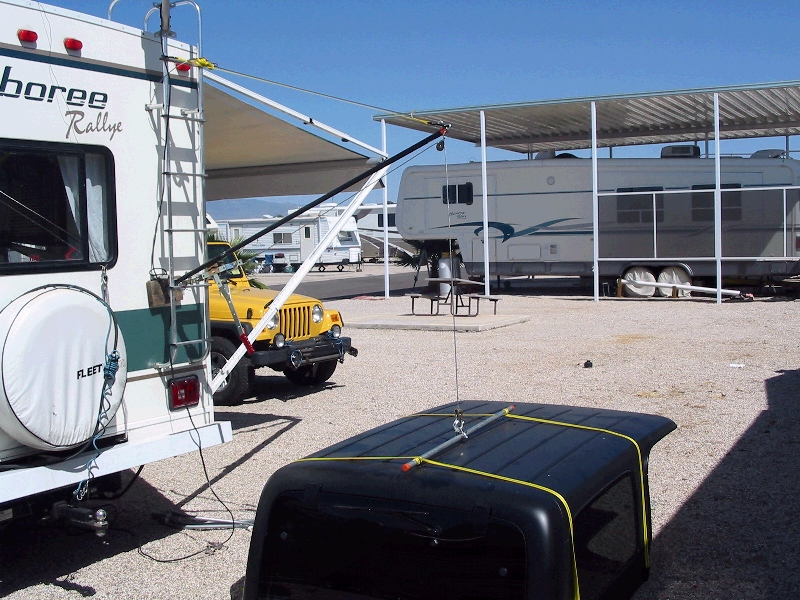 4/19 -4/21 Tucson, Just bumming around the Voyager, built a crane to take top of the Jeep,
